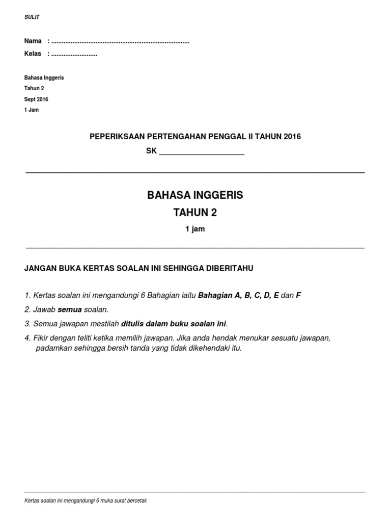 Related : Soalan Bahasa Inggeris Tahun 2 Kssr : Himpunan soalan pelbagai subjek peperiksaan tengah tahun bagi tahun 1,2,3,4,5..