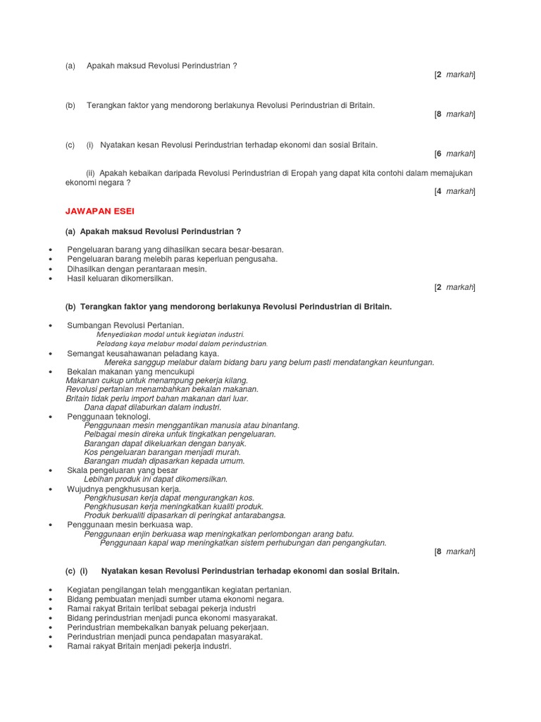 Revolusi perindustrian pertama berasal dari great britain, dan ia merebak ke eropah barat dan amerika utara dalam masa yang singkat. (b) terangkan faktor yang mendorong berlakunya revolusi perindustrian di britain. 23 revolusi perindustrian spm 2007 jelaskan lima perkaitan antara revolusi pertanian dengan revolusi perindustrian. Berdasarkan pemerhatian anda, jelaskan kejayaan yang telah dicapai oleh negara setelah memanfaatkan perkembangan revolusi perindustrian di eropah. (ii) apakah kebaikan daripada revolusi perindustrian di eropah yang dapat kita contohi dalam memajukan ekonomi negara ?