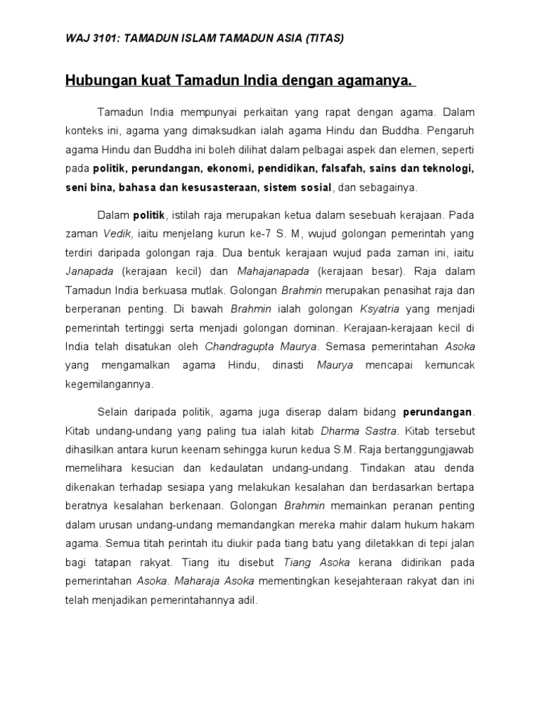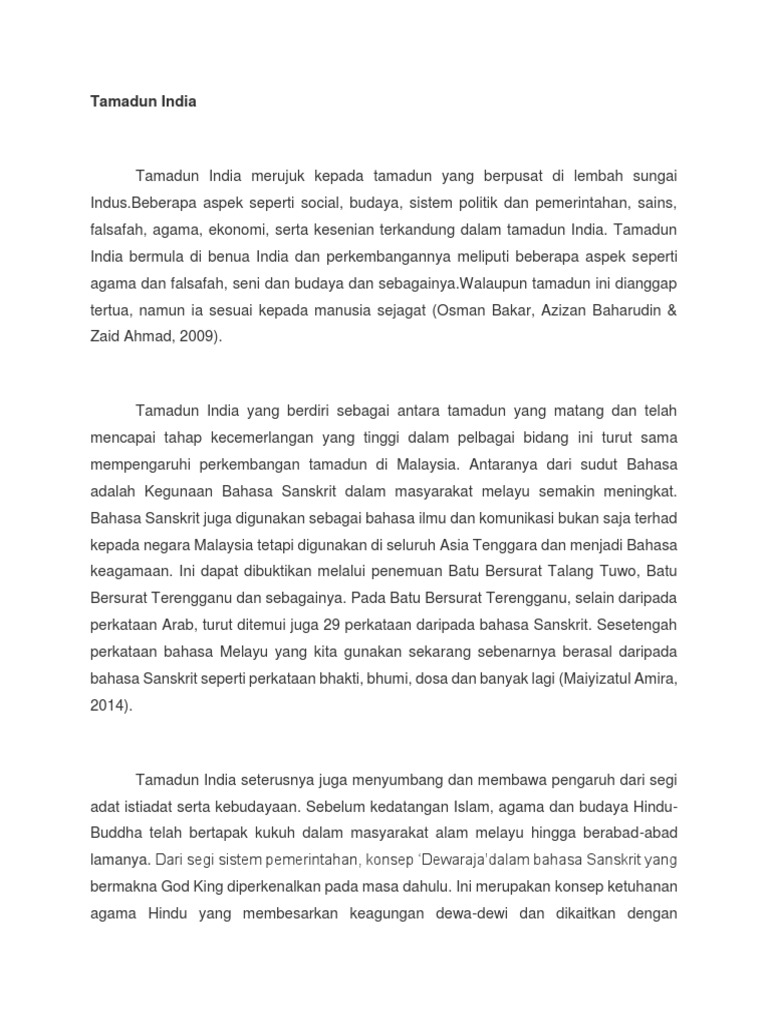 Tamadun india sejarah & sumbangan nama no. Di lembah sungai indus yang mana dikenali sebagai tamadun indus.islam tersebar di india terlebih dahulu dan telah dianuti oleh golongan berkasta rendah atau sudra yang sebelum ini menjadi mangsa diskriminasi dalam sistem kasta hindu. Kelas atasan terdiri daripada golongan pendeta, pendeta raja (golongan bangsawan) dan pemilik tanah yang menikmati kehidupan mewah. Tamadun india pengenalan masyarakat dan budaya agama dan kepercayaan sumbangan 3. • kerajaan ditadbir mengikut syariat islam.